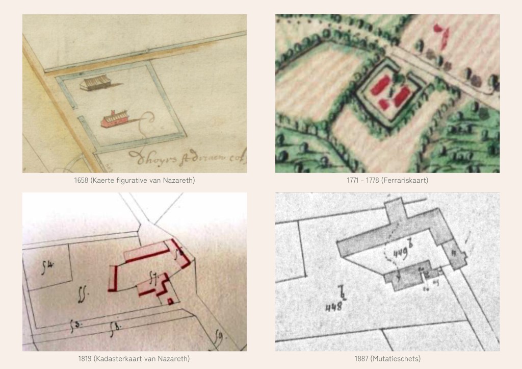 The oldest designation of the farmstead – ‘s Graven Hazele – dates back to 1249 and can also be found under that name on the ‘Kaerte figurative of Nazareth’ from 1658. Between the seventeenth and nineteenth century, the rectangular, moated farmstead with farmhouse and parallel buildings underwent various conservations and developments, but since then, the farm and the adjoining unbuilt grounds have remained untouched. In 2011, the Flemish government recognised the historical value of the entire site and made it a monument. Click here for more history.