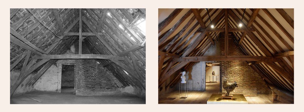The fully restored attic has been transformed into a sophisticated art gallery where artists form different disciplines can present their work. In Kunst op Zolder, artists interact with each other and with the unique location. Make an appointment to visit the gallery: www.kunstopzolder.be.