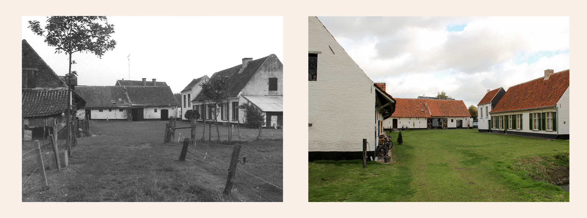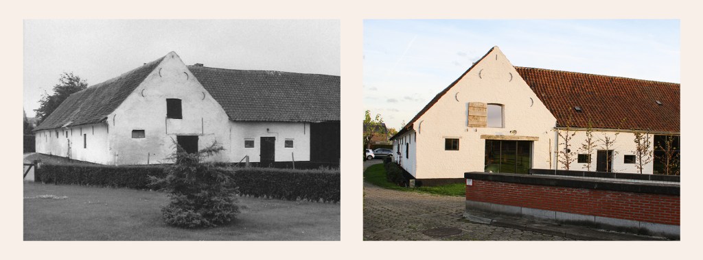 Today, both the farmhouse and the parallel barn and perpendicular stables remain. They are now facing a new and remarkable future as, together with the municipality of De Pinte and Flanders Heritage Agency, a lively project was developed. Today, Hof ter Groene Walle is a landmark where living, working and relaxing go hand in hand and where the past echoes in the present.